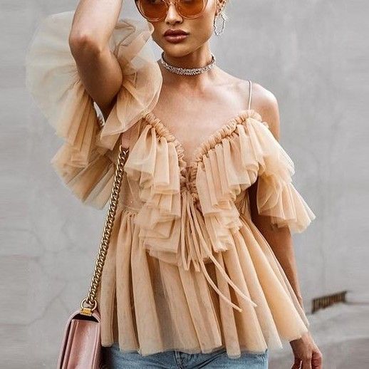 Dá pra combinar com uma calça jeans despojada ou usar um longo vestido com babados. Por ser uma peça com muito volume você pode equilibrar com uma peça lisa.
